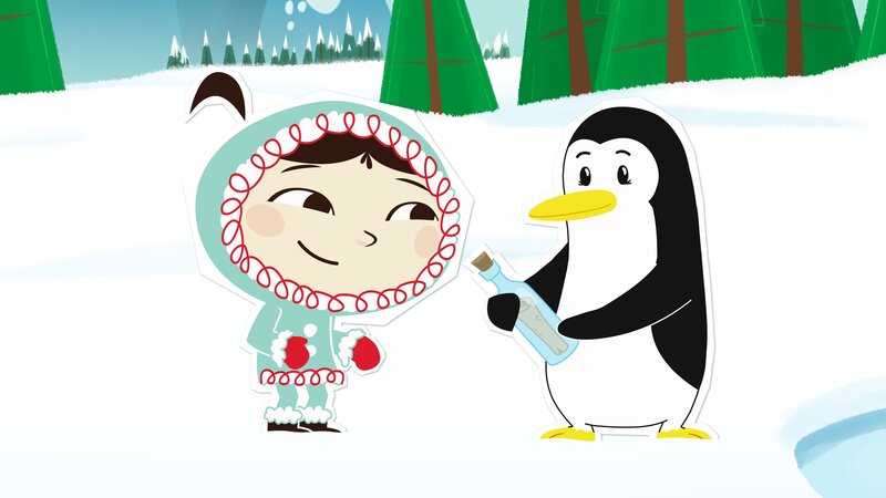 Durch eine Ungeschicklichkeit von Hubert geht der Spiegel im Iglu von Inui zu Bruch. Die Freunde kommen auf die Idee, mit ausgeschnittenen Eisplatten selber glasig schimmernde Flächen herzustellen. Diese neuen Spiegel sind allerdings nicht ganz glatt und bilden die Freunde in ziemlich komischen Verzerrungen ab. Damit sehen alle plötzlich dicker, dünner oder oben und unten ganz verschieden aus.