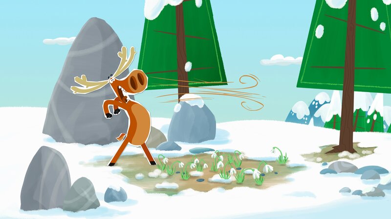 Beim Versteckspiel muss Hubert plötzlich heftig niesen, und zwar immer dann, wenn er bestimmte Polarblumen sieht und riecht. Darum denken seine Freunde, dass er eine Allergie hat. Ein Versteckspiel ist mit einem ständig schniefenden Elch natürlich nicht möglich. Als Hubert mit einem heftigen Niesen sogar eine Lawine auslöst, wollen sie ihn gar nicht mehr mitspielen lassen. Doch dann finden sie heraus, dass er tatsächlich nur einen sehr kräftigen Schnupfen hat. Den muss er auskurieren, und dann ist alles wieder gut.