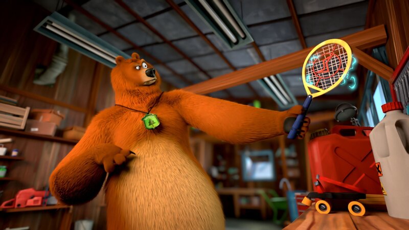 Auf der Suche nach einer Maßnahme, um die neue Spinne loszuwerden, wird Grizzy im Werkzeugraum des Rangers schnell fündig. Was man mit diesem Werkzeug wohl alles machen kann?