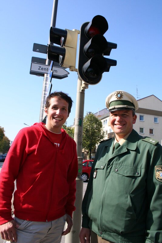 • Willi und Martin Cornils, Leiter der Jugendverkehrsschule München, der ihm Einiges über Sicherheit im Straßenverkehr erzählen kann.