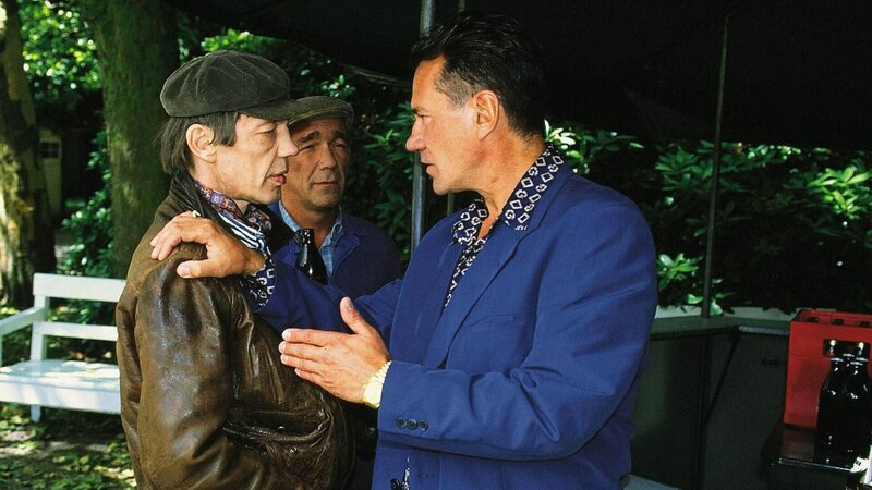 Kriminalhauptkommissar Kehler (Wolfgang Bahro, r.) und sein Kollege Eschenbach (Matthias Bullach, l.) befragen Dahlbeck, den Besitzer des Gewinnerpferdes "Glücksfee", nach einem Mordfall auf dem Pferderennplatz.