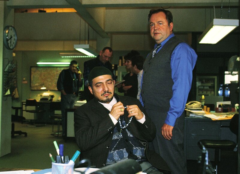 Kriminalhauptkommissar Stefan Kehler (Wolfgang Bathke, re.) befragt den Vater (Yalcin Güzelce als Adran Yanbak) der ermordeten Türkin nach den Familienverhältnissen. Er gibt zu, daß er die Beziehung seiner Tochter zu dem jungen Deutschen für eine unverzeihliche Schande hielt.