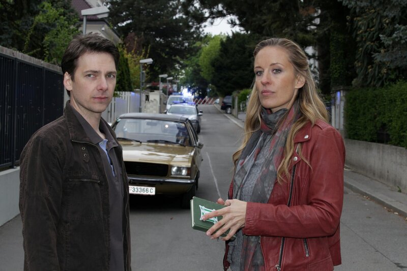 Lanz spricht mit Maximilian Förster, dem Nachbarn des getöteten Richter Dr. Alexander Schiller. (v.l.n.r.: Matthias Förster (Stefan Pohl), Gruppeninspektorin Penny Lanz (Lilian Klebow)). "SOKO Wien - Tigran der Unsichtbare": Gruppeninspektorin Penny Lanz im Gespräch mit Matthias Förster. Fotograf: Stefan Haring