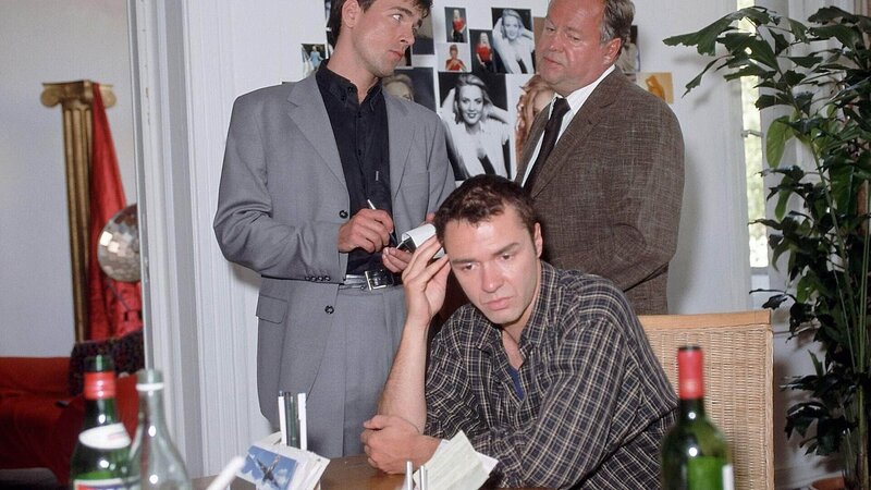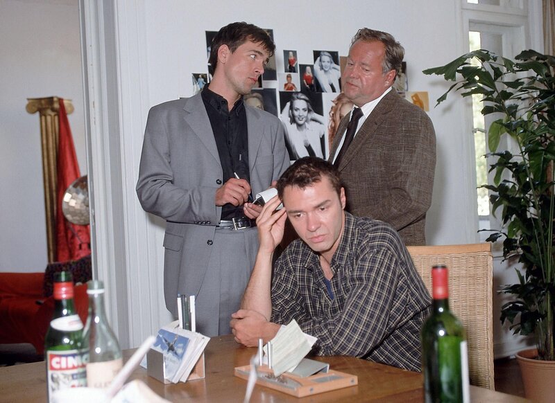 Benno Windisch (Udo Swann, sitzend) wird von den Kommissaren Bonhoff und Kehler über den Lebenswandel seiner ermordeten Freundin befragt.