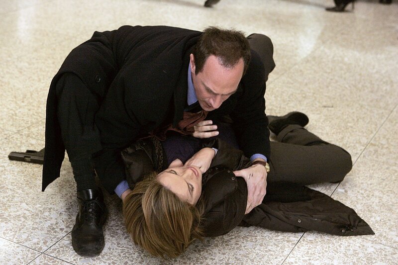 • Bei einer Verfolgungsjagd wird Olivia Benson (Mariska Hargitay) am Hals schwer verletzt. Elliot Stabler (Christopher Meloni) kümmert sich sofort um seine Partnerin, anstatt den Täter weiter zu verfolgen.
