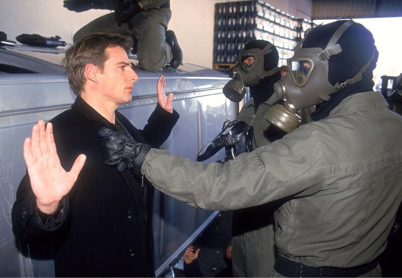Als Tom (Rene Steinke, li.) nach einer rasanten Verfolgungsjagd schließlich aus dem Transporter gezerrt wird, kann er kurz die Augen des Anführers sehen...