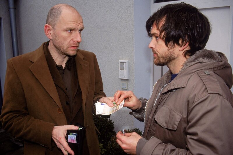 Eine Frau verunglückt mit ihrem Jeep auf der Autobahn. Für Tom und Semir weist zunächst alles auf einen traurigen Routineeinsatz hin. In der Firma 'Reifen König' ist der Unfall ebenfalls registriert worden. Ingenieur Carsten Beil stellt seinen Chef Matthias König zur Rede, doch König beruhigt seinen Freund und Angestellten und verlangt von ihm, sich ruhig zu verhalten. Beils schlechtes Gewissen führt ihn schließlich zu Tom und Semir, welchen er ohne seine Identität preiszugeben brisante Details verrät. Im Bild: Carsten (Götz Schubert, li.) trifft er auf seinen Bruder Robert (Ole Puppe), der das schwarze Schaf der Familie ist und ständig Geldsorgen hat. Dies soll nun ein Ende haben, denn Robert hat brisante Firmen-Unterlagen gefunden, die Carsten versteckt hat.
