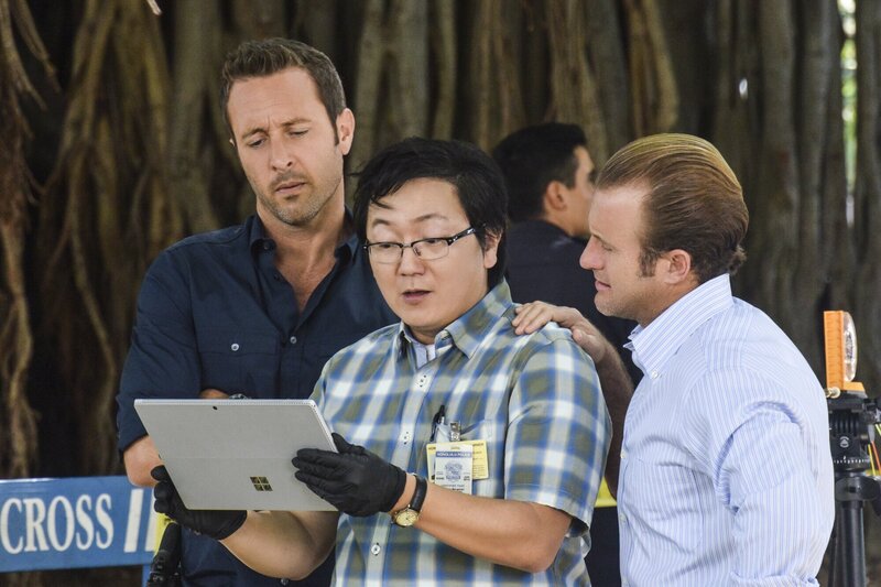 Als Jerrys Freundin plötzlich niedergeschossen wird, müssen Steve (Alex O'Loughlin, r.), Danny (Scott Caan, r.) und Max (Masi Oka, M.) ermitteln, um den Täter zu fassen ...