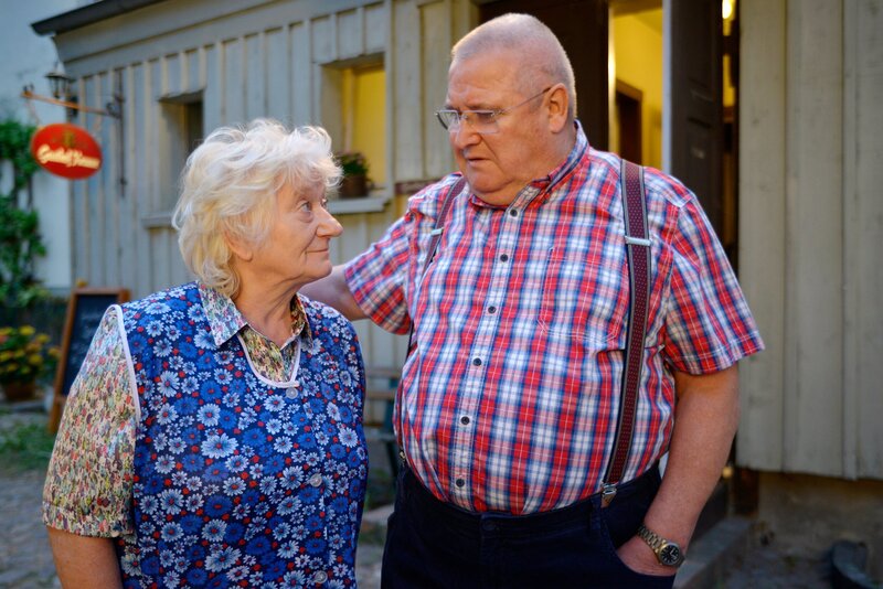 • Elsa (Carmen-Maja Antoni) und ihr Bruder Hotti (Horst Krause) sind am Ende des ersten Tages zufrieden mit seinem Verlauf.