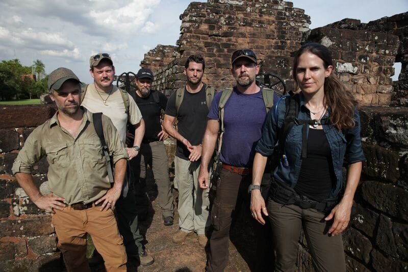 The full team (Keith "Cappy" Plaskett, Emilio White, Brett Tutor, Jeremy Whalen, Mehgan Heaney-Grier, and Cork Graham) posing at Trinidad.