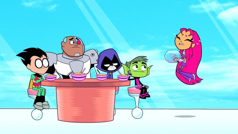 v.li.: Robin, Cyborg, Raven, Beast Boy, Starfire