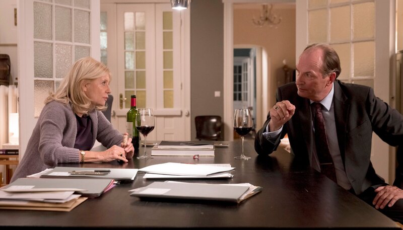 • Isa von Brede (Sabine Postel, l.) und Markus Gellert (Herbert Knaup, r.) überlegen bei einem Glas Wein, wie es mit der Kanzlei weitergehen soll.