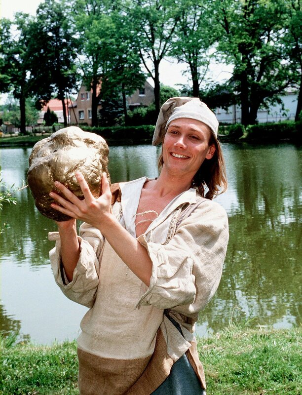 • Der Lohn für sieben Jahre: Mit einem dicken Klumpen Gold tritt Hans im Glück (Andreas Bieber) seine Heimreise an.