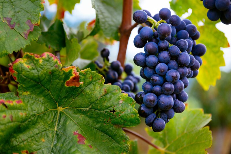In Rheinhessen von der Sonne verwöhnt: Trauben in den Reben des Weingutes von Alexandra Damm und Andreas Schnürr.