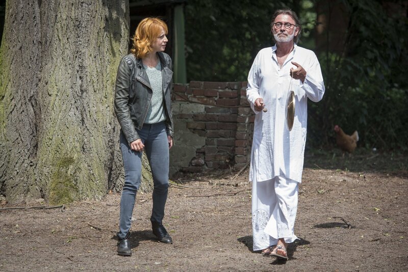 Birgit Kraft (Nova Meierhenrich, M.), die Lebensgefährtin des ermordeten Homöopathen und Heilpraktikers, ist erschüttert. Wer konnte ihrem Freund so etwas antun? Noch haben Felix (Tom Beck, r.) und Elena (Annika Ernst, l.) keine Antwort auf diese Frage ...