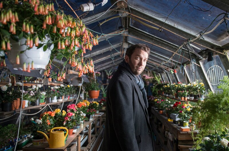 • Hauptkommissar Lessing (Christian Ulmen) bei seinen Ermittlungen in Lupos Gewächshaus.