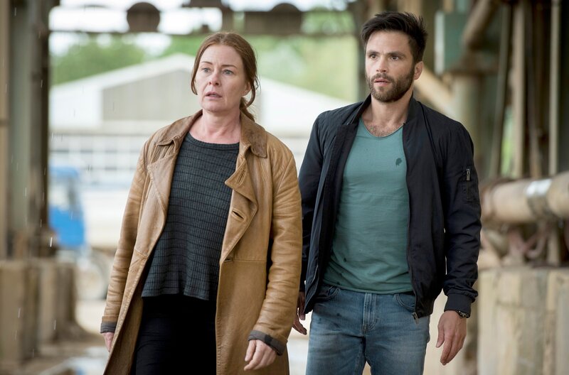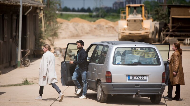 Nachdem die Ex-Stasi Spionin Anne Marie Fuchs (Lina Wendel) und der Im- und Exporthändler Youssef El Kilali (Karim Cherif) ihren ersten gemeinsamen Fall mit unorthodoxen Methoden erfolgreich gelöst haben, sieht sich Youssef als aufstrebender Sherlock Holmes. Ohne Annes Wissen hat er kurzerhand Visitenkarten für die junge Detektei „Fuchs & El Kilali“ drucken lassen und fleißig an seine Kunden verteilt. Nicht ohne Erfolg, denn tatsächlich zieht er eine potentielle Auftraggeberin an Land – sehr zum Erstaunen der völlig ahnungslosen Anne, die das Ermittler-Startup für eine Schnapsidee hält und ihm zunächst jegliche Unterstützung verweigert. - Katja Mehring (Tanja Schleiff, l) fährt mit Anne Marie Fuchs (Lina Wendel) und Youssef El Kilali (Karim Cherif) auf der Suche nach ihrem Mann Carsten zur Kiesgrube.