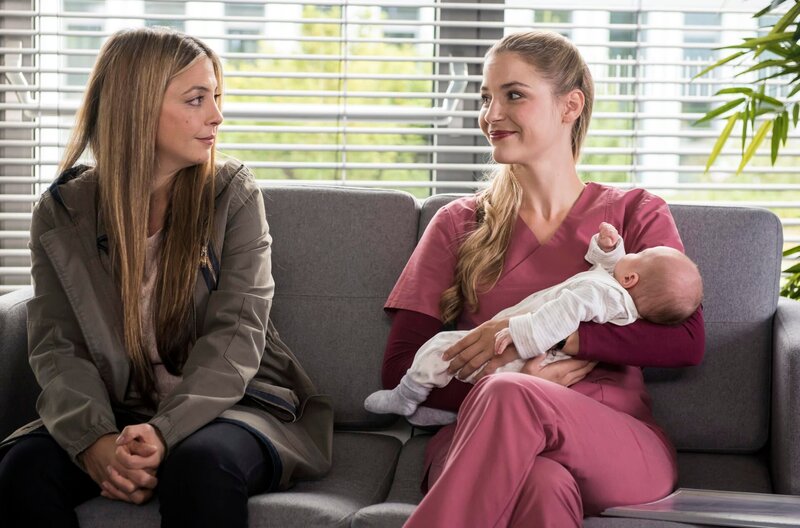 • Die Assistenzärztinnen Dr. Theresa Koshka (Katharina Nesytowa, r.) und Vivienne Kling (Jane Chirwa, l.) nehmen zwei ganz spezielle Patienten auf - das Ehepaar Bernd (Stefan Gebelhoff, 2.v.l.) und Bernd König (Robert Schupp, 2.v.r.)!