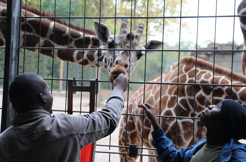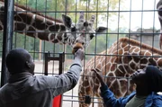 Bevor es für Stefanie Reska und Thali in den Kongo geht, bekommen sie heute einen Gegenbesuch von zwei Rangern und der Leiterin der Hundestaffel. Thali und Stefanie zeigen ihrem Besuch die Wilhelma. Für die beiden afrikanischen Ranger wird das zu einem besonderen Erlebnis, denn die beiden haben noch nie Okapis oder Giraffen aus nächster Nähe gesehen. Gracien Sivanza und Martin Iikanka mit Okapi.