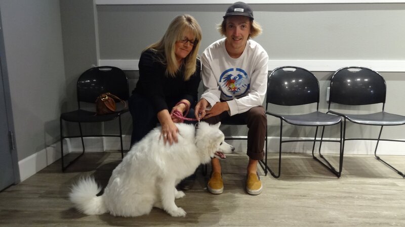 Gloria Lorenz and Jason Lorenz Jr. in with their pet dog Lady at Planned Pethood Plus for a follow up visit.