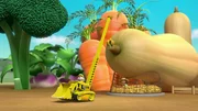 Marshall und Alex helfen beim Wässern der Pflanzen. Dabei sollen sie etwas flüssigen Dünger zufügen. Aber statt nur eines Tropfens schüttet Alex den ganzen Kanister über die Pflanzen, die zu Riesengemüse heranwachsen. Ein Fall für die Paw Patrol.