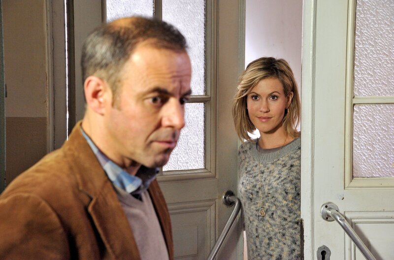 Ein junger Revierförster, verschnürt und mit indianischer Kriegsbemalung im Gesicht, ist tot im Wald gefunden worden. Jonas Wolter (Jan Niklas Berg, l.) und Dr. Münster (Jörg Gudzuhn, r.) am Tatort.