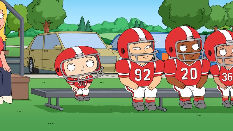 Nachdem er für ein Mädchen gehalten wurde, möchte Stewie (l.) männlicher werden und beschließt, sich einem Footballteam anzuschließen.