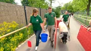 Der Schaubauernhof hat einen Neuen: Porsche, ein stattlicher Eber, zieht ein. Die Quarantäne hat er hinter sich, in eine Transportkiste will er nicht - also geht's zu Fuß einmal quer durch die Wilhelma. Die Eskorte aus Tierpflegern hat Mühe, an dem Rennschwein dran zu bleiben.
