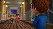 Simon (r.) stellt Alvin zur Rede: Warum spielt er Dave so üble Streiche mit Rosie? Alvin (hinten r.) versucht, sich zu erklären. +++