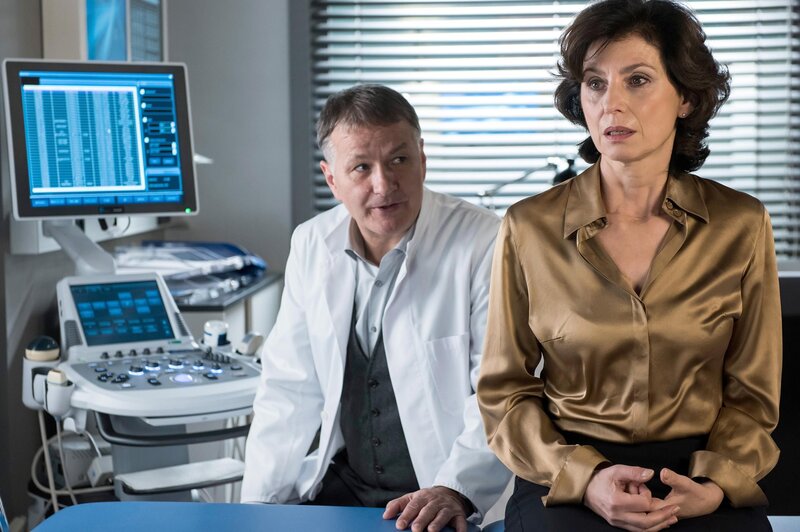 Dr. Roland Heilmann (Thomas Rühmann, l.); Prof. Karin Patzelt (Marijam Agischewa, r.)