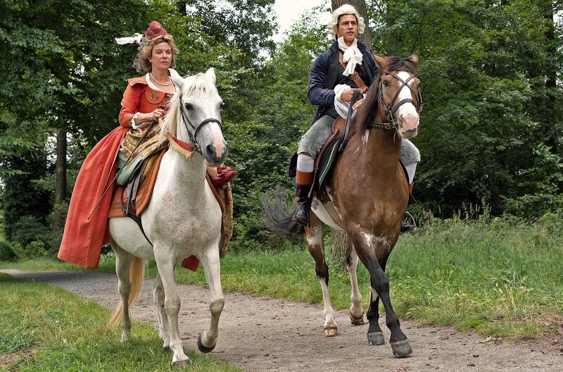 Die wunderschöne Prinzessin Victoria von Siebenlande (Jeanne Goursaud) trifft beim Maskenball auf Prinz Augustin aus dem Königreich Lichterwald (Emilio Sakraya).