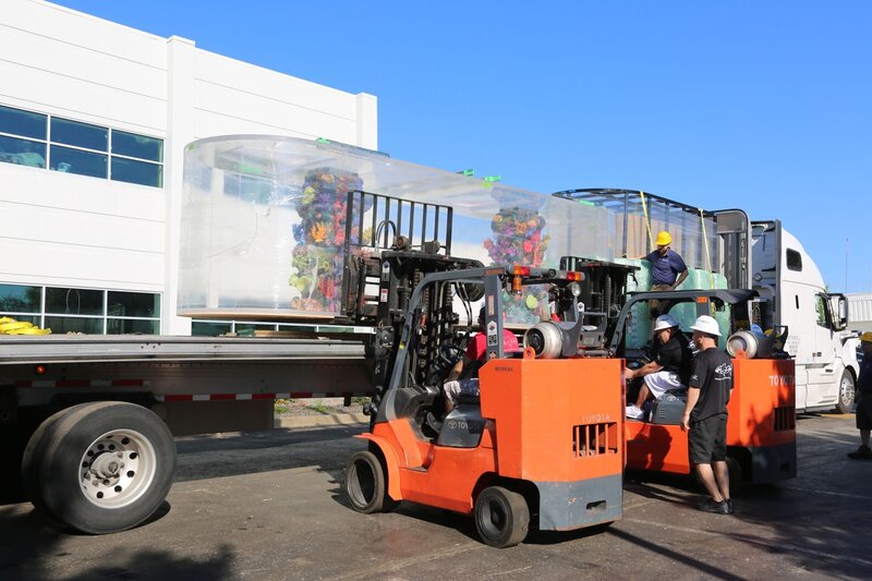 The tank arrives at Samtec.