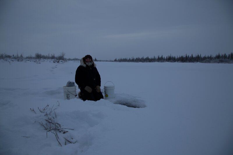 Heimo Korth is ice fishing.