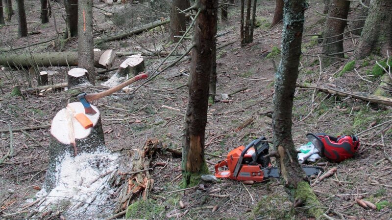 Thaddäus Göhl und Johannes Natterer werden bei der Arbeit von Spezialisten unterstützt, denn die Technik-Profis sollen an einem unzugänglichen Steilhang im Allgäu schwere Baumstämme abtransportieren.