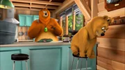 Die Bärenfrau hat Grizzy ihr Junges anvertraut. Wachsam hält er ein Auge auf das Bärenjunge, aber er hat nicht mit den Lemmingen gerechnet! Diese sind von den Bäuerchen des kleinen Bären so begeistert, dass sie mit Hilfe mehrerer Dosen Limo einen riesigen Rülpser aus ihm herauskitzeln wollen.