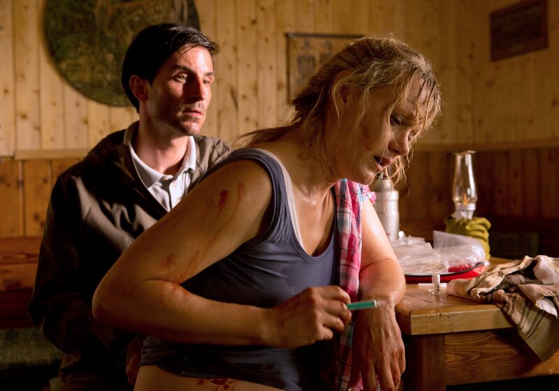 • Der Bankräuber Thomas (Christoph Bach) hilft seiner verletzten Freundin Nicola (Anna Schudt) dabei, ihre Schusswunde zu versorgen.