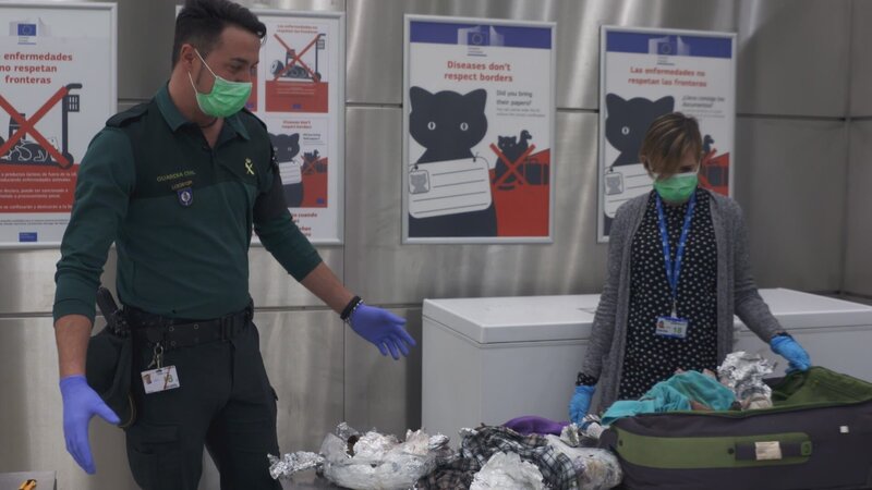 Ein toter Affe? Am Flughafen Madrid-Barajas werden täglich bis zu siebenundvierzigtausend Gepäckstücke abgefertigt. Dabei gerät zum Auftakt der zweiten Staffel ein herrenloser Koffer aus Marrakesch ins Visier der Guardia Civil, der einen unangenehmen Geruch verströmt. Die Bilder des Röntgenmonitors geben ebenfalls Anlass zur Besorgnis, deshalb wird vorsorglich auch das Gesundheitsamt eingeschaltet. An der Grenze zwischen La Línea de la Concepción und Gibraltar droht eine Autodurchsuchung unterdessen in Handgreiflichkeiten auszuarten.