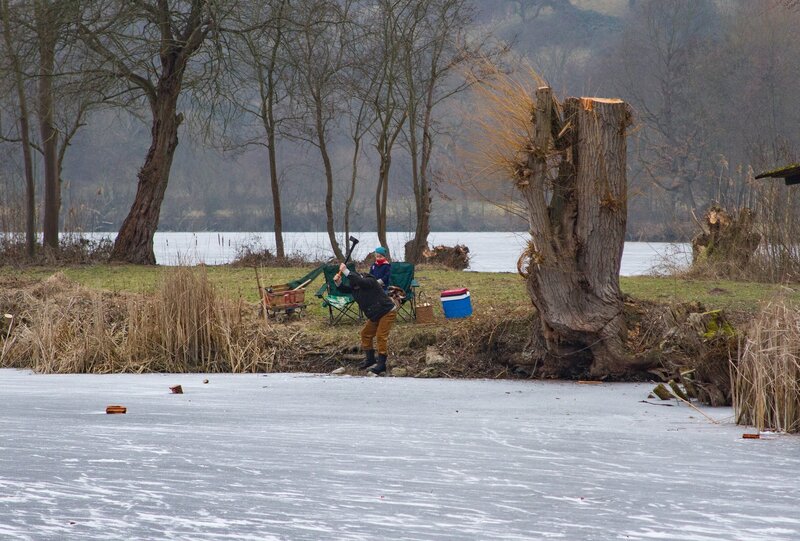 Opa Karl (Peter Rauch) schlägt ein Loch ins Eis.