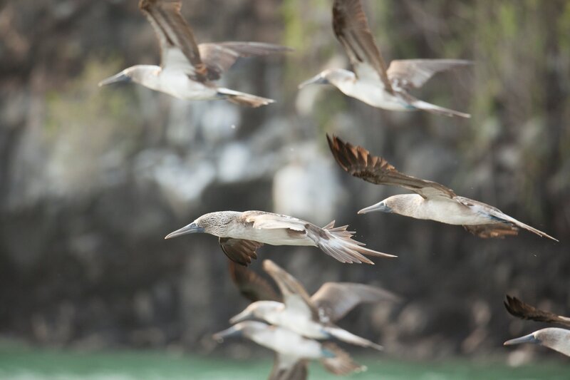 Blaufusstölpel stürzen sich mit einer Geschwindigkeit von fast 100km/h ins Wasser um Fische zu erbeuten.