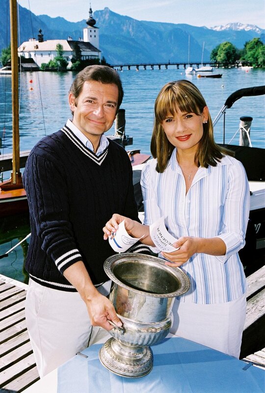 "Schlosshotel Orth", "Der Preis des Erfolges." Die Jungautorin Niki Schluderer will dem arroganten Verleger Thomas Tassler die Meinung sagen. Als das Los entscheidet, dass die beiden bei der Schlosshotel-Segelregatta ein Team bilden sollen, gerät Nikis Plan plötzlich außer Kontrolle. Felix schafft es, die Finanzierung zum Kauf des Schlosshotels aufzustellen - aber um welchen Preis. Ben treibt Albert, den Oberkellner des Schlosshotels mit seinen Sonderwünschen an den Rand des Nervenzusammenbruchs. Im Bild (v.li.): Franz Tscherne (Thomas Tassler), Birgit Stauber (Niki Schluderer), Stefano Bernardin (Max Prinz), Patrick Rapold (Ben Prinz).