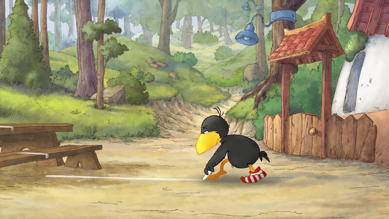 Wildschwein Stulle und Rabe Socke streiten sich, wer von ihnen beiden ein gemeinsames Wettrennen gewonnen hat. Als sich die zwei nicht einigen können, ziehen sie eine Grenze durch den Wald, die nicht überschritten werden darf. Doch bald sind sie selbst von dieser Grenze genervt.