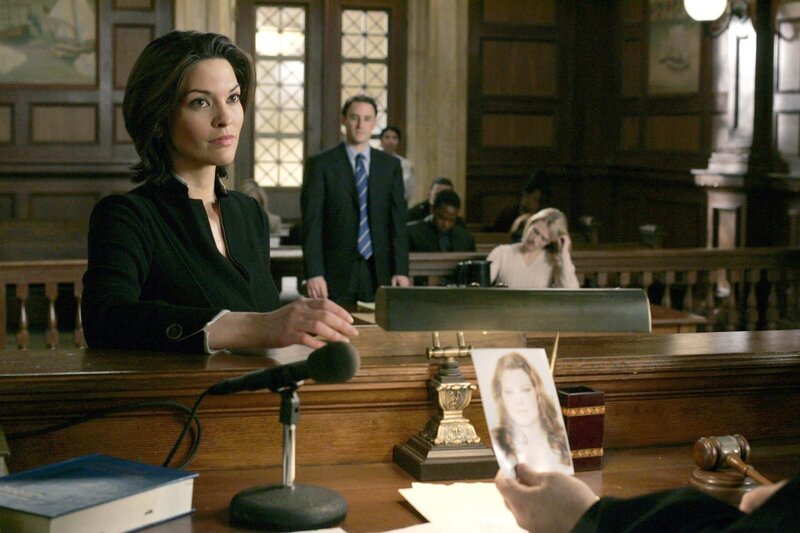 LAW & ORDER -- "Quit Claim" Episode 1810 -- Pictured: (l-r) January Jones as Kim Brody, Greg Keller as Peter Berbatov -- NBC Photo: Will Hart