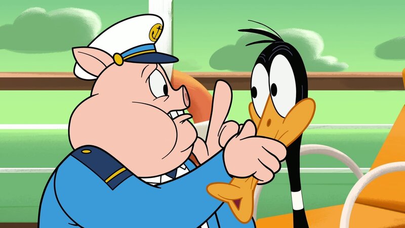 Daffy fährt als blinder Passagier auf einem Kreuzfahrtschiff und Schweinchen Dick muss dafür sorgen, dass Daffy nicht auffliegt.