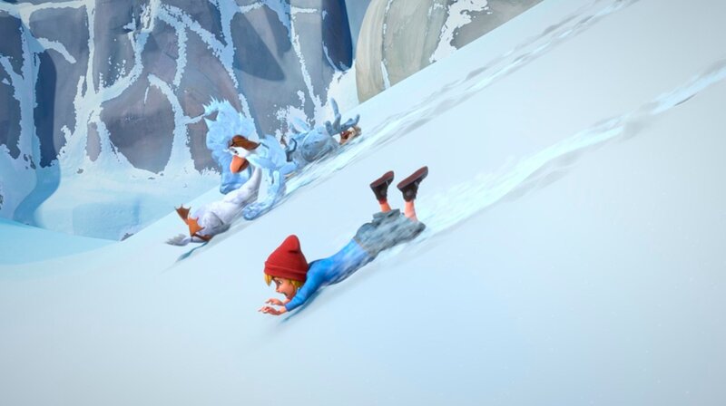 • Flügelschön, Martin und Nils stürzen ab und schlittern direkt auf eine Gletscherspalte zu.
