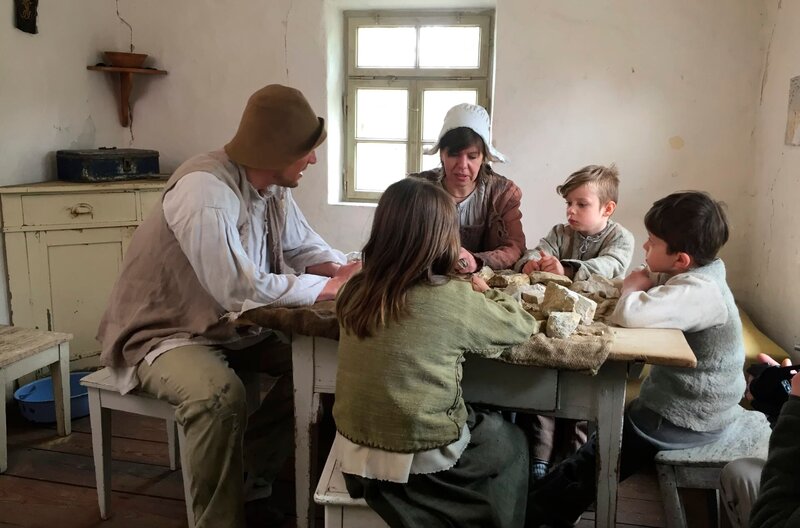 • Ein Job für die Ärmsten der Armen: Die Sandmänner und –frauen kloppten Steine zu feinem Stubensand – Material für die Kehrwoche. Auch die Kinder mussten bei der ungesunden Arbeit mit anpacken.