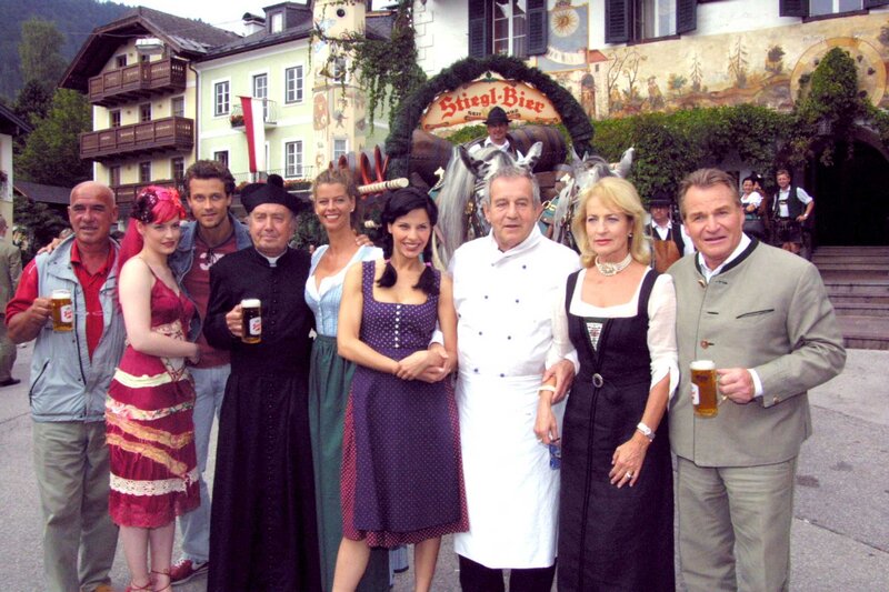 L-R: Regisseur Otto Retzer, Enie van de Meiklokjes, Wayne Carpendale, Hans Clarin, Johanna Hohloch, Katrin Lampe, Otto Schenk, Dagmar Koller, Fritz Wepper.