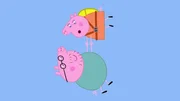 Mama Wutz soll Fallschirmspringen. Ganz schön mutig, finden Schorsch und Peppa.