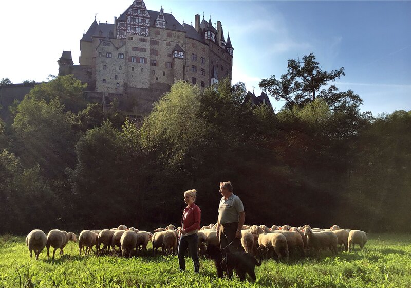 Anna Lena Dörr mit Georg Theobald, Ex-Bänker und jetzt "Vollzeitschäfer", der die Wiesen unterhalb der Burg Eltz bewirtschaftet.