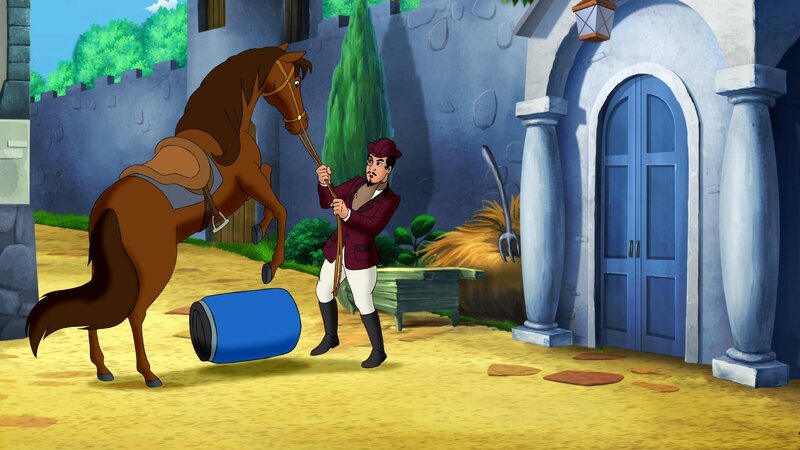• Graf Falko ist in Sorge um seine Cleopatra. Tina und Bibi wissen Rat und bieten sich als Pferdeflüsterinnen an.