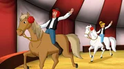 Bibi, Tina und Alex machen Bekanntschaft mit Schaustellern eines Wanderzirkus. Unglücklicherweise ist deren Zugwagen kaputt und sie sind pleite. Bibi weiß Rat: eine Extra-Vorführung! Der Zirkus gastiert bei der Alten Mühle. Eine willkommene Abwechslung und gute Einnahmemöglichkeit. Doch der Direktor ist skeptisch. Seine Frau fehlt, die mit ihrer Pferdenummer Hauptattraktion ist. Reitartistik können auch Bibi und Tina, gern springen sie ein.